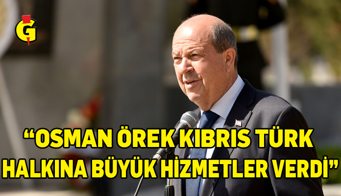 Cumhurbaşkanı Ersin Tatar törende yaptığı konuşmada, Osman Örek’in Kıbrıs Türk halkına büyük hizmetler verdiğini vurguladı.