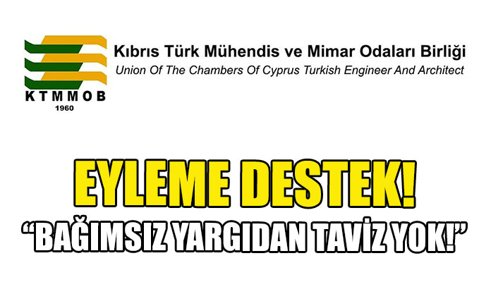 KTMMOB Yönetim Kurulu; Kıbrıs Türk Halkının kurumlarına sahip çıktığının, hukukun üstünlüğü ve yargı bağımsızlığından ödün verilmeyeceği sesinin yükseltileceği eylemi düzenleyen ilgili meslek örgütüne dayanışmasını ve desteğini bildirir.”