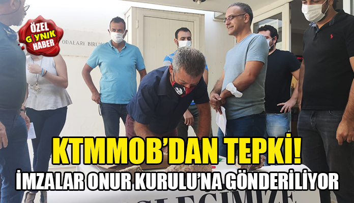 Başbakan Ersan Saner’e tepki gösteren KTMMOB, bugün saat 10.30da KTMMOB binasında Onur Kurulu’na sevk edilmek üzere üyeler, Ersan Saner’in meslekten men edilmesi için imza kampanyası başlattı.