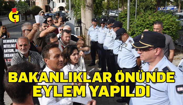 Kıbrıs Türk Orta Eğitim Öğretmenler Sendikası (KTOEÖS) seçilmiş kurulları ve eylem komitesi, Milli Eğitim Bakanlığı ve Maliye Bakanlığı önünde eylem yaptı.