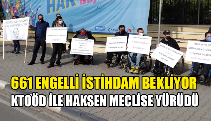 Kıbrıs Türk Ortopedik Özürlüler Derneği (KTOÖD) ile Eşit Hak ve Adalet Sendikası (HAKSEN), engellilerin istihdam, sağlık ve altyapı konularında yaşadıkları sorunlara dikkat çekmek amacıyla, Kuğulu Park’ta toplanarak Meclis’e yürüdü.