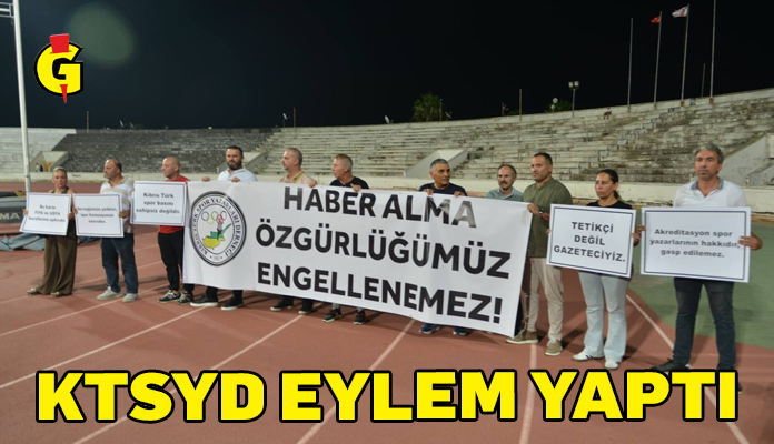 “KTFF Başkanı Hasan Sertoğlu’nun, KTSYD Başkanı Necati Özsoy ve 10 yönetim kurulu üyesine, yeni sezonda maçlara akreditasyon yasağı koyduğu” gerekçesiyle yapılan eyleme, Basın-Sen de destek verdi.