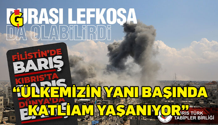 Savaşın ve ambargoların acısını bilen bir toplum olarak tüm kalbimizle Filistin halkının yanındayız. Filistin halkıyla dayanışma amacıyla Kıbrıs Türk Tabipleri Birliği olarak, kamuoyuna yönelik bir dizi etkinlik yapmayı planlamış bulunuyoruz. Tüm Kıbrıslı Türkleri de bu katliama karşı duyarlı olmaya davet ediyoruz.
