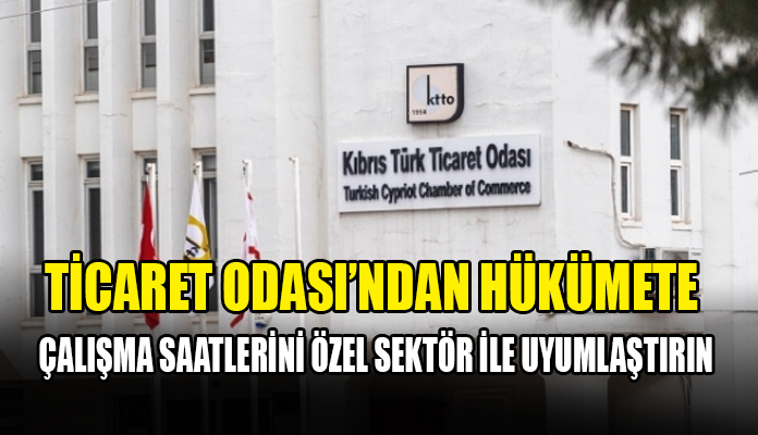 Kıbrıs Türk Ticaret Odası (KTTO), “kamuda çalışma saatlerinin özel sektör çalışma saatlerine uyumlaştırılarak çalışma hayatının verimliliğinin artırılmasına yardımcı olunmasının kaçınılamayacak bir zorunluluk olduğunu” belirtti.