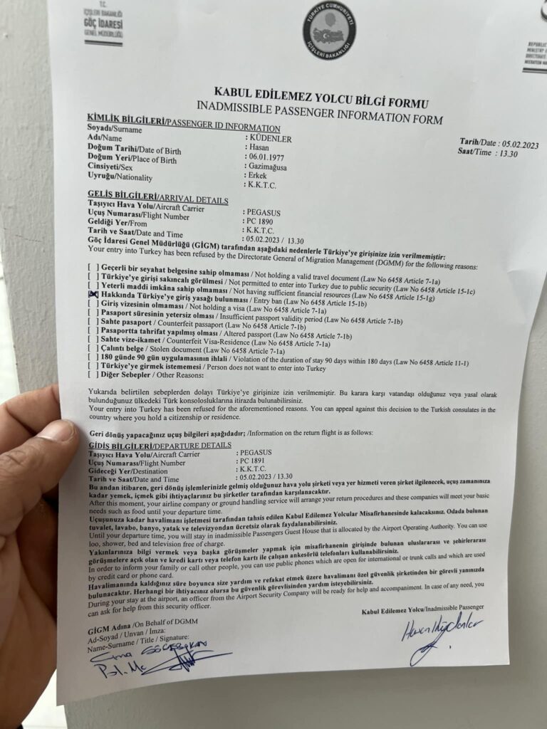 KKTC’den Türkiye’ye yarı finallerde yarışmak üzere, takımıyla Gaziantep’e giden, Beden Eğitimi Öğretmeni Hasan Küdenler’e Gaziantep Havalimanı’nda giriş yasağı uygulandı.