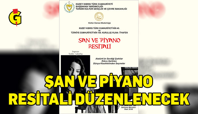 Başbakan Yardımcılığı Turizm, Kültür, Gençlik ve Çevre Bakanlığı’na bağlı Kültür Dairesi, Kuzey Kıbrıs Türk Cumhuriyeti’nin 40’ncı ve Türkiye Cumhuriyeti’nin 100’üncü kuruluş yılına ithafen şan ve piyano resitali düzenliyor.
