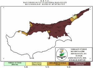 KKTC Meteoroloji Dairesi verilerine göre Kıbrıs’ta bu yıl ağır bir kuraklık yaşanıyor. Verilere 2024 Eylül ayı ile 2025 Eylül arasındaki 12 ayda normalin neredeyse iki katı bir kuraklık sözkonusu.