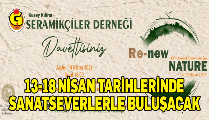 Kuzey Kıbrıs Seramikçiler Derneği’nin Kültür Dairesi katkılarıyla bu yıl on yedincisini gerçekleştireceği sanat etkinliği, “Re- Nature” 13- 18 Nisan tarihleri arasında sanatseverlerle buluşacak.