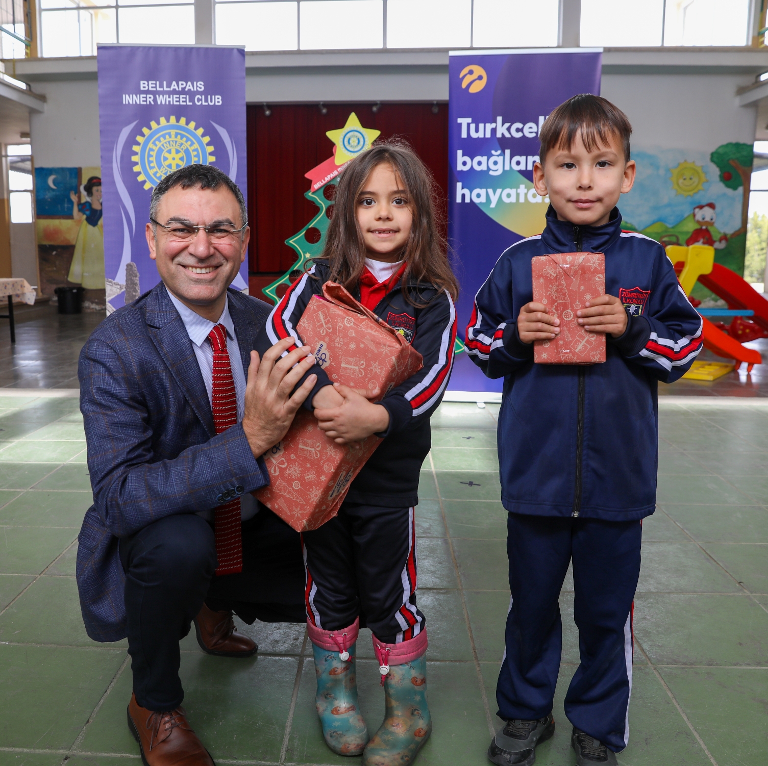 Kuzey Kıbrıs Turkcell Genel Müdürü Murat Küçüközdemir, Marka İletişimi Müdürü Özlem Kavaz Soykan, İnsan Kaynakları Müdürü Serhat Gezgin ve Turkcell ekibi yanı sıra Bellapais Inner Wheel Derneği Başkanı Ayşem Erişir ile Yönetim Kurulu Üyesi Mine Tokay okulu ziyaret ederek çocuklara hediyelerini takdim etti.