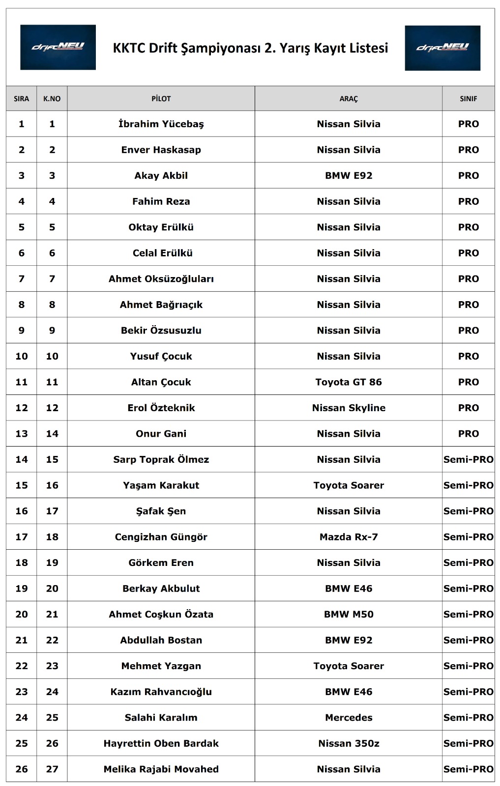 Yarışa toplam 26 araç kayıt yaptırmış durumda. 10 bin kişilik bir seyirci kitlesine hitap edecek olan etkinlik, Türkiye ve Güney Kıbrıs’tan da misafirleri ağırlayacak. İlk kez KSK biletle online bilet satışı yapılacak.