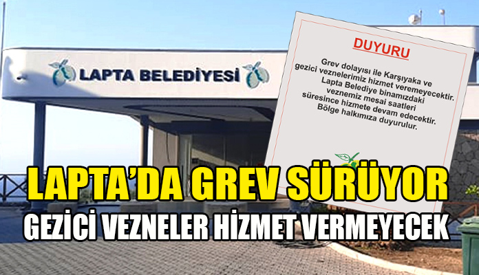 Lapta Belediyesi’nde 4 aydır maaşlarını alamadıkları gerekçesiyle çalışanların başlattığı grev devam ediyor. Grev nedeniyle hizmetler aksıyor ve çöpler toplanamıyor.