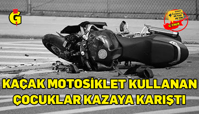 Larnaka-Alethriko’da 13 ve 14 yaşındaki çocuklar  kaçak motosiklet kullanırken kazaya karıştı.