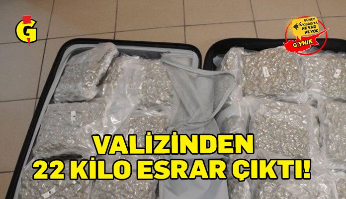 Larnaka Havalimanı’nda düzenlenen operasyonda, 39 yaşındaki bir kadın yolcunun valizinde yaklaşık 22,5 kilogram esrar ele geçirildi. Kadın yolcu gözaltına alındı.