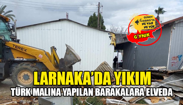 Larnaka’da “Grigoris Afksentiu Caddesi” üzerinde Kıbrıs Türk malı arsalar üzerine inşa edilmiş barakaların Belediye tarafından yıkım işlemine dün başlandığı bildirildi.