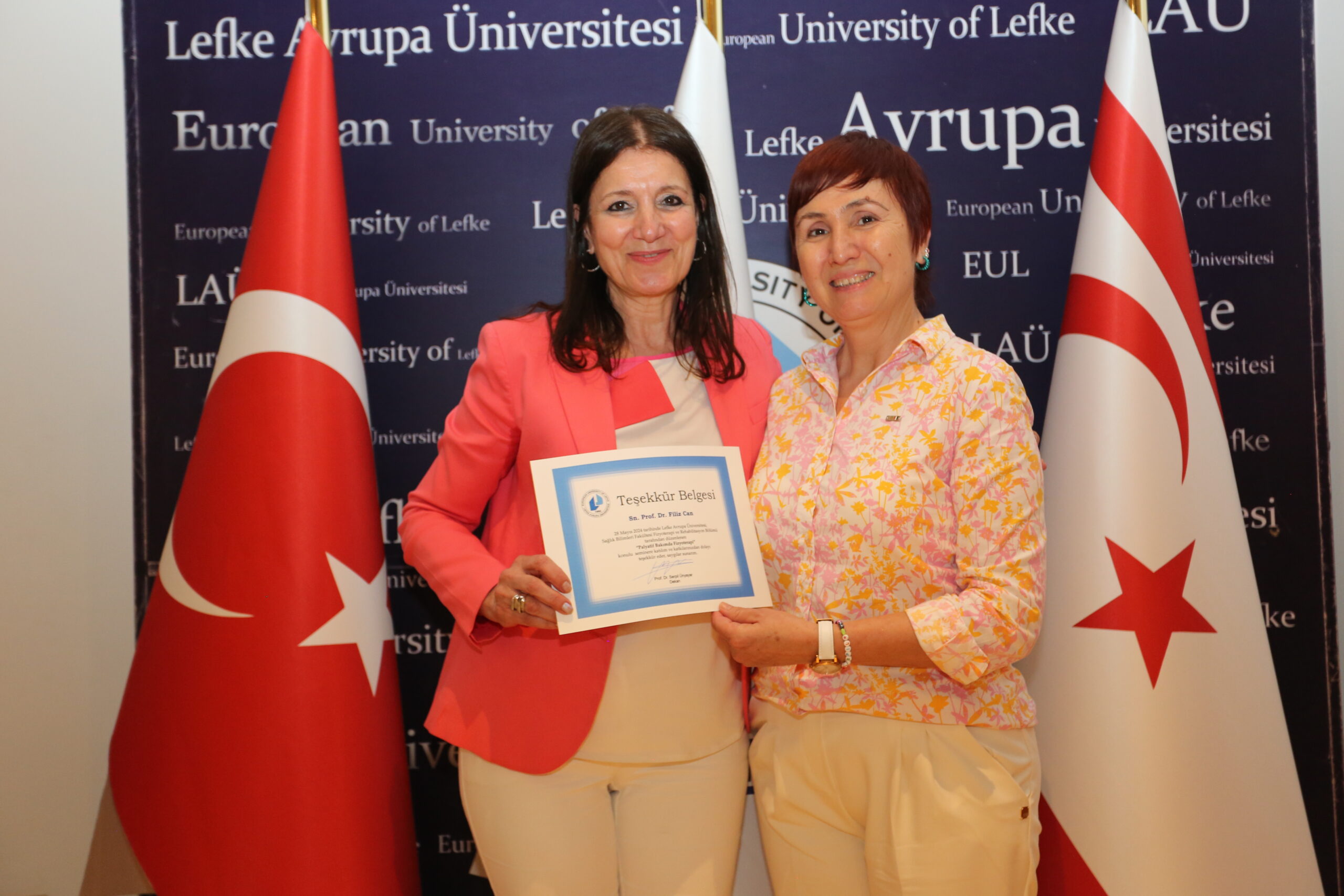 Katılımcıların sorularının yanıtlanması ile tamamlanan etkinlik sonunda, Sağlık Bilimleri Fakültesi Dekanı Prof. Dr. Serpil Ünyayar, Prof. Dr. Filiz Can’a teşekkür belgesi takdim ederek bu güzel sunumundan dolayı kendisine teşekkür etti.