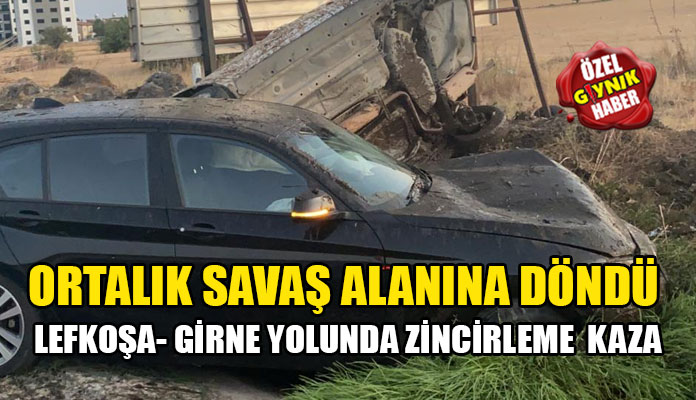 Lefkoşa girne anayolunda saat 19.00 sıtalarında meydnaa gelen trafik kazasın 2 kişi yaralandı. 3 aracın karıştığı kazada ortalık adeta savaş alanına döndü. Polisin soruşturması sürüyor.