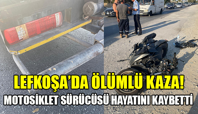 Lefkoşa’da bugün saat 16.20 sıralarında,  Dr. Fazıl Küçük Bulvarı boyunca SP 330 plakalı motosikleti Gönyeli çemberine doğru dikkatsiz bir şekilde kullanan Gönyeli’de sakin 54 yaşındaki Ali Erol Palaz yolun solunda bulunan Aksoy Çocuk Dünyası isimli iş yeri önüne geldiği zaman  o esnada önünde trafik sıkışıklığı nedeniyle durmakta olan 42 yaşındaki Ferit Özesen yönetimindeki THT 659 plakalı çekici aracın sol arka kısmına çarptı.