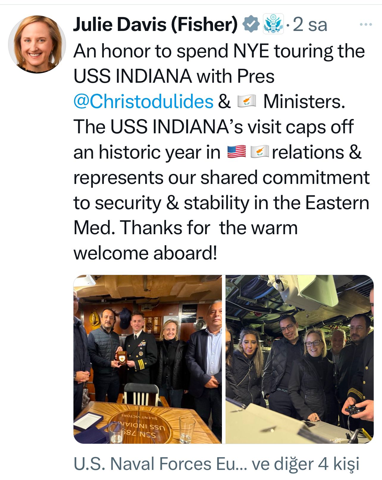 Rum yönetimi lideri Nikos Hristodulidis 2024’ün son gününde, dün Limasol limanına demirleyen, nükleer güçle çalışan USS INDIANA (SSS-789) isimli ABD nükleer denizaltını ziyaret etti.