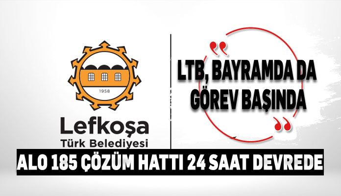 LTB gerek rutin çalışma programlarıyla gerekse nöbetçi çalışanlarıyla Bayram tatilinde de hizmet vermeye devam edecek. Lefkoşalılar bayram süresi boyunca her türlü taleplerini “Alo 185 Çözüm Hattı”na 24 saat bildirebilecek.