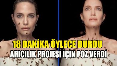 Kadın işçi istihdamı için kamera karşısına geçen Jolie, dakikalarca arılarla poz verdi