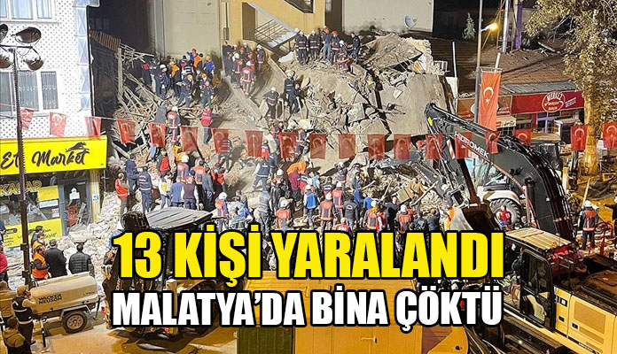 Malatya’da bir binada meydana gelen göçüğün ardından başlatılan arama kurtarma çalışmalarında enkazdan 13 kişi yaralı olarak kurtarıldı.