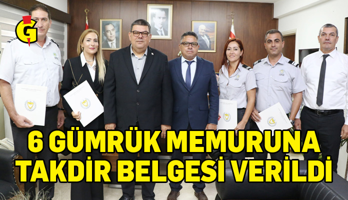 Maliye Bakanı Özdemir Berova, ülkeye girişlerde uyuşturucu tespit eden 6 gümrük memuruna, gösterdikleri üstün gayret ve başarıdan ötürü takdir belgesi verdi.