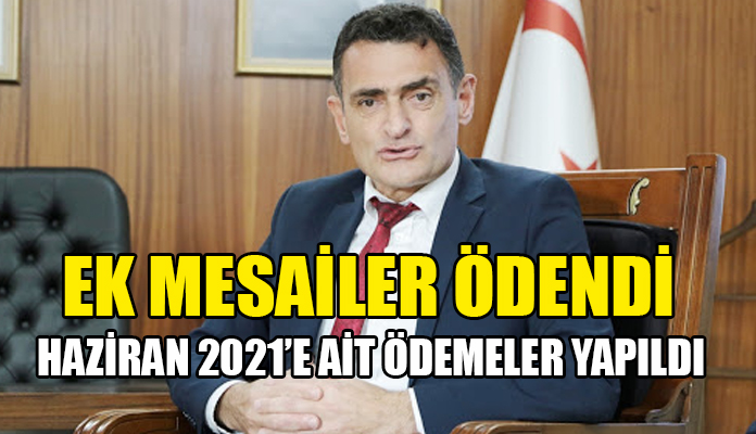 Maliye Bakanı Oğuz, Haziran 2021’e ait ek mesailerin bugün ödendiğini açıkladı. Oğuz, Haziran 2021’e ait ek mesailer için toplam 13 milyon 359 bin 292 TL ödendiğini belirtti.