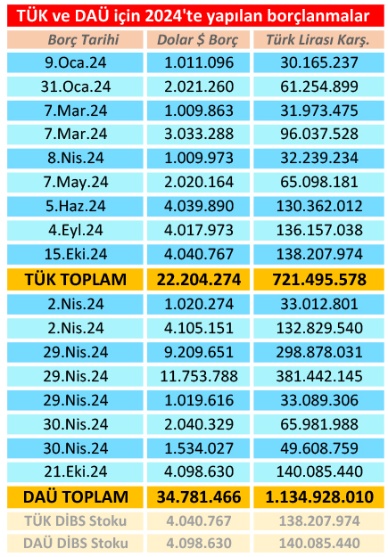 Ekim ayı içinde TÜK için 4 milyon 040 bin; DAÜ için 4 milyon 098 bin dolar borç alındı