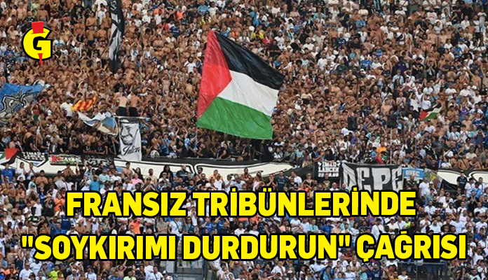 Fransa Ligue 1’in 2. haftasında Velodrome Stadı’nda Paris FC’yi konuk eden Olimpik Marsilya’nın taraftarları Özgür Gazze (Free Gaza) yazılı dev bir pankart açtı.