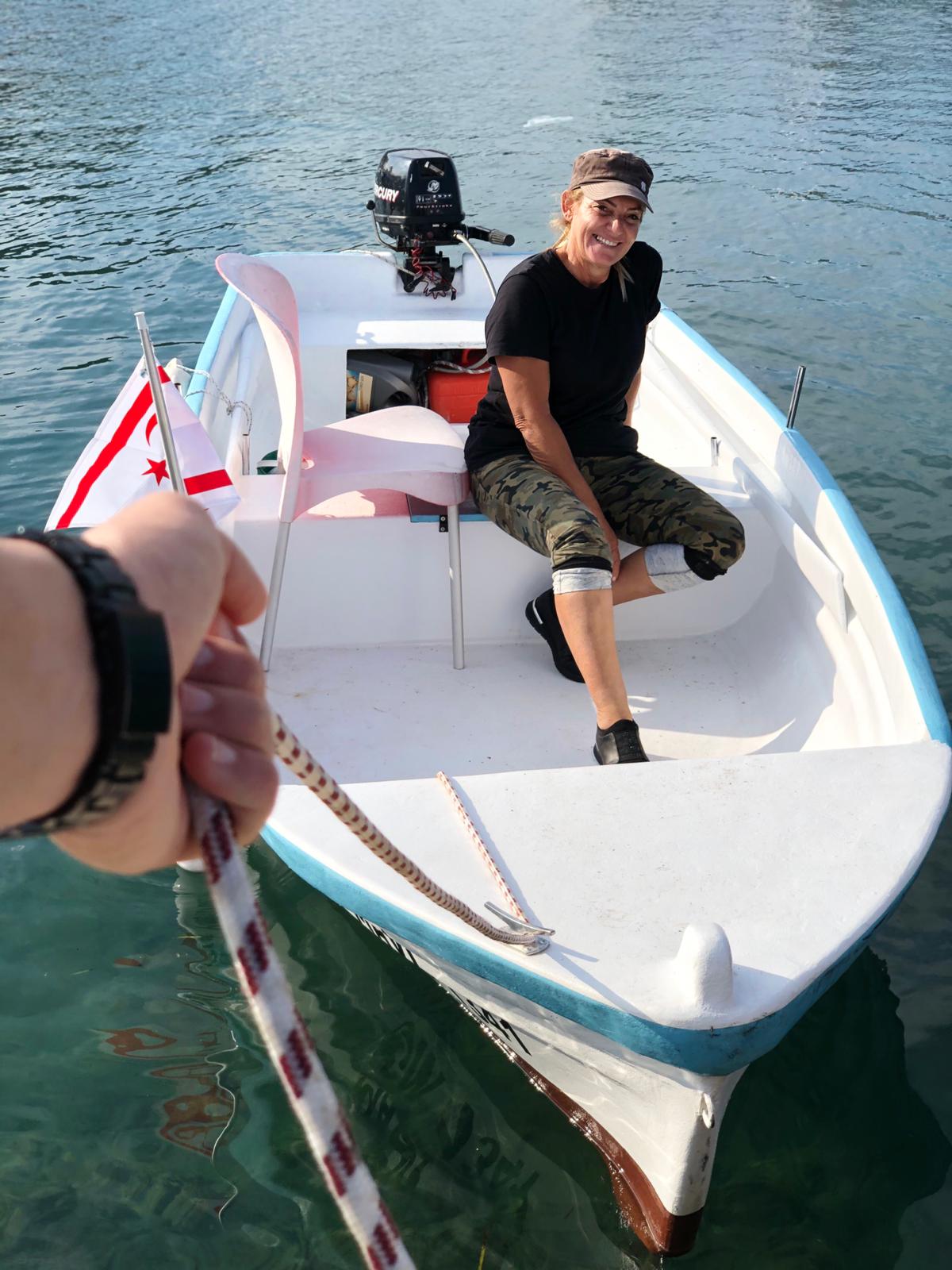 Yıllardır hobi olarak balıkçılık yapan Nadir Tüccar, ‘Mavi’ isimli teknesiyle Mağusa’da tek kadın balıkçı oldu