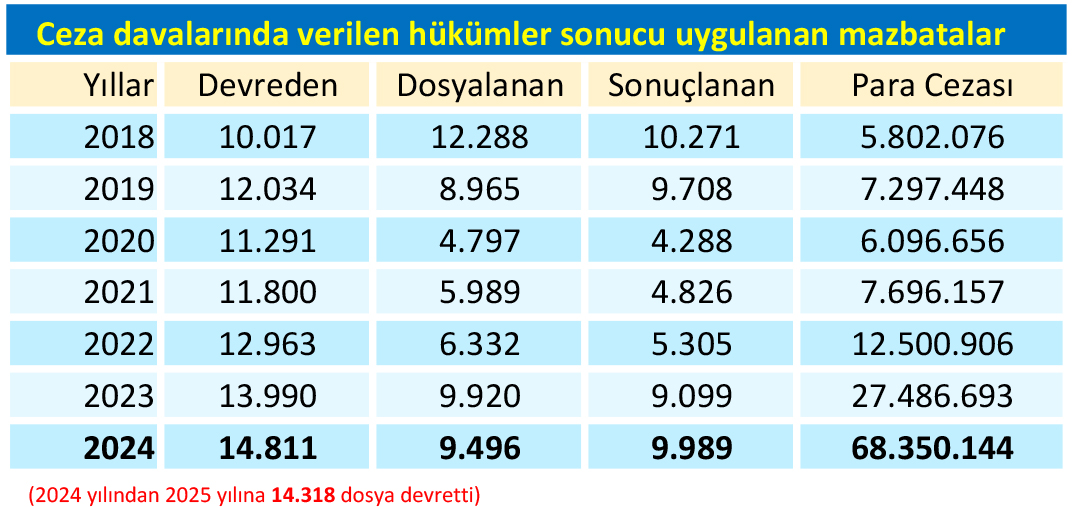 2024’te mazbatalardan 68,3 milyon lira gelir sağlandı, 3,5 milyon lira da belediye cezası tahsil edildi