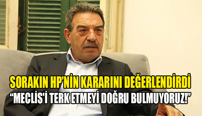 “CTP Genel Sekreteri Erdoğan Sorakın, HP’nin aldığı sine-i millete dönme kararının oldukça önemli olduğunu, karara saygı duyduklarını, ancak Meclis’i terk edip, halkı sonu bilinmez bir maceraya sürüklemeyi de doğru bulmadıklarını söyledi.”