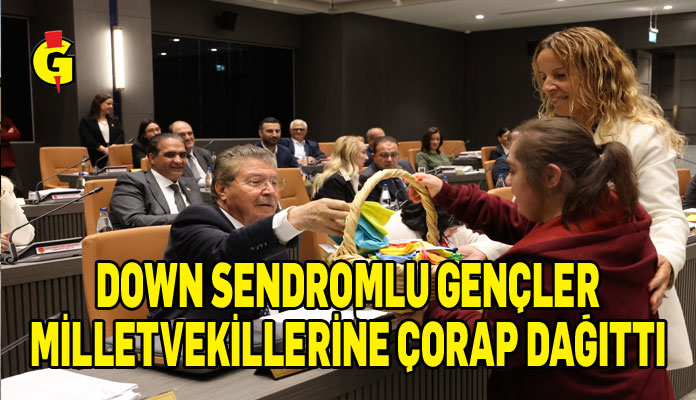 Down sendromlu gençler tarafından milletvekillerine çorap dağıtıldı.