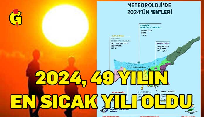 2024’ün en sıcak günü 16 Haziran’da 46,8 derece ile Türkeli’nde, en soğuk günü ise 29 Şubat’ta -0,2 derece ile Lefkoşa’da kaydedildi. 2024 yılı ayrıca, 1975 – 2024 yıllarını kapsayan 49 yıllık periyotta kayıtlara geçen en sıcak yıl oldu.