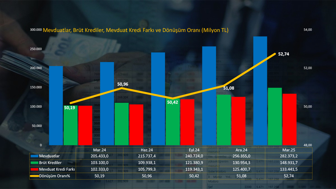Mart 2025 sonunda “brüt kredilerin toplam mevduata oranı” %52.74 seviyesinde saptandı