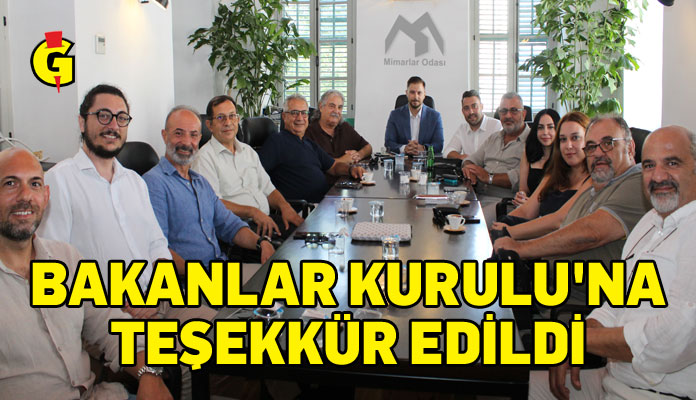 Mimarlar Odası’ndan yapılan yazılı açıklamada, ilgili değişiklik tüzüğünün 9 Temmuz’da Resmî Gazete’de yayımlanarak yürürlüğe girdiği belirtilerek, aldıkları karardan dolayı Bakanlar Kurulu’na teşekkür edildi.