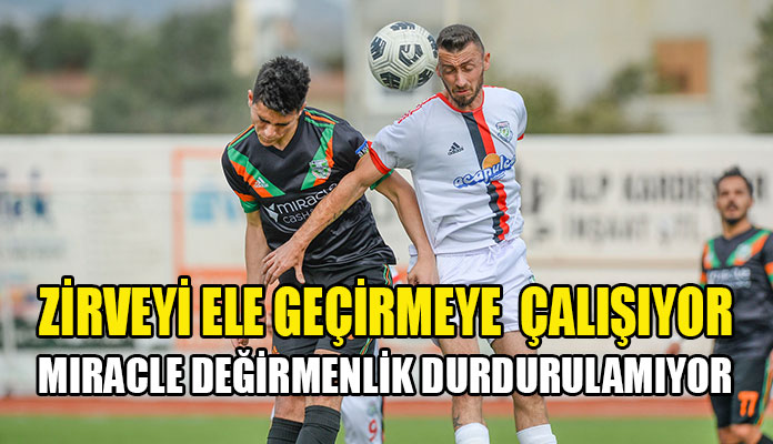 Aksa 1. Lig’in 21. haftasında ligin şampiyonluk adaylarından Miracle Değirmenlik sahasında Düzkaya’yı konuk etti. Sadık Cemil Stadı’nda rakibini 4-0’lık net bit skorla mağlup eden Miracle Değirmenlik, Hakan Törehan başkanlığında koymuş olduğu hedeflere adım adım yaklaşmaya devam etti. İkinci devrede oynadığı altı karşılaşmada yenilgi yüzü görmeyen ve hanesine 13 puan yazdıran Miracle Değirmenlik’e, Düzkaya karşısında galibiyeti getiren golleri hat-trick yaparak maçın yıldızı olan Turgut Kaçar ile İlyas Yılmaz kaydetti.