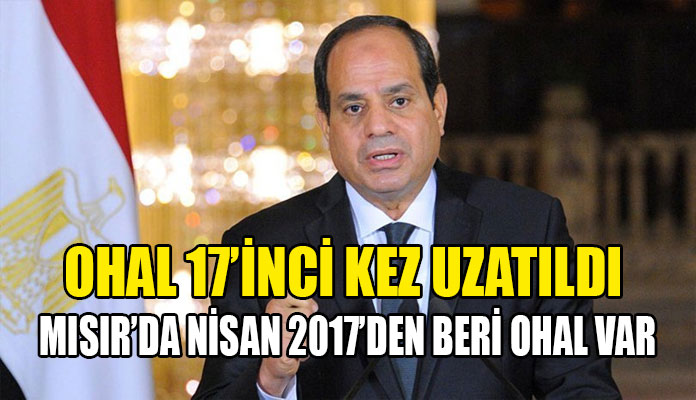 Mısır resmi ajansı MENA’nın haberine göre, 17’nci kez uzatılan OHAL uygulaması 24 Temmuz’dan itibaren 3 ay daha yürürlükte olacak.