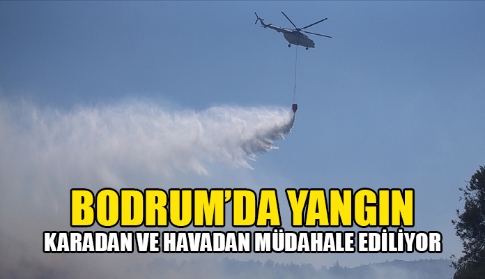 Muğla’nın Bodrum ilçesinde ormanlık alanda çıkan yangına karadan ve havadan müdahale ediliyor.