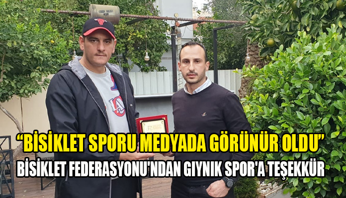 Kıbrıs Türk Bisiklet Federasyonu, bisiklet sporuna ve federasyonun bu sezonki organizasyonlarına göstermiş olduğu ilgiden ötürü GIYNIK Spor Servisi’ne teşekkür etti. Bu çerçevede, Bisiklet Federasyonu’nda bu akşam yapılacak genel kurul ile başkanlık görevini devredecek olan Mustafa Cevdet, geçtiğimiz gün GIYNIK Spor Şefi Okan Karademir ile bir araya geldi.