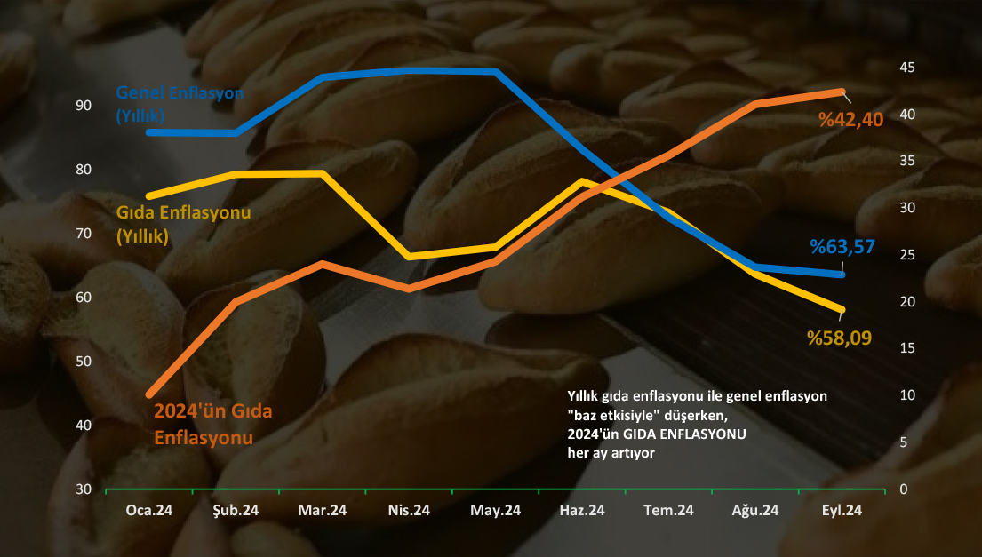 Ocak-Eylül arasındaki dokuz aylık dönemde gıda fiyatlarındaki artış %42.4 oranına yükseldi