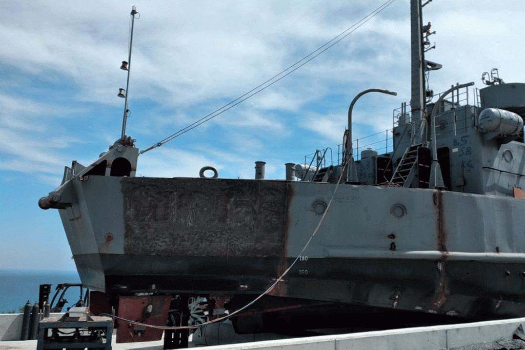 Çıkarma Plajı’na kurulması planlanan Müze Gemi’nin üstündeki Ç128 ibaresinin silindiği ortaya çıktı.