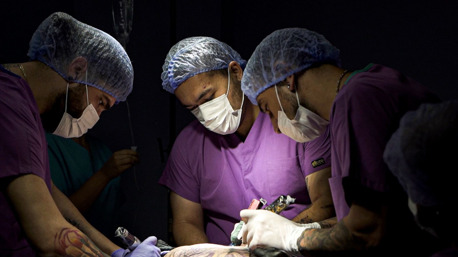 Ekip, bir dövme tutkununun kendi isteğiyle narkoz altında dövme uygulaması gerçekleştirdi.