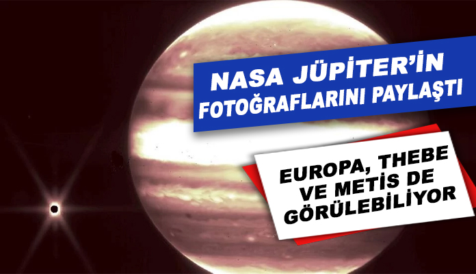 NASA, James Webb Uzay Teleskobu’nun kendi Güneş Sistemi’mizden çektiği ilk fotoğraflar olan ve gaz devi Jüpiter’in kızılötesi ışıkta parladığı görüntüleri yayımladı. Görsellerde Jüpiter’in uyduları Europa, Thebe ve Metis de görülebiliyor.