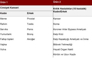 Kritik Hastalıklar Sigortasında 2 ayrı ürün’ün lansmanını yaptıklarını ifade eden Ömür Şengün, “ Ürün1, kadın ve erkekler için farklı “Cinsiyet Kanseri” risklerini içermektedir. Kadınlarda en sık rastlanan kanser çeşidinin meme kanseri, erkeklerde ise prostat kanseri olduğunu; Ürün 2 de ise en sık görülen hastalıklara yer vermeye çalıştıklarını, 10 farklı kritik hastalığı teminat altına adıklarını belirtti. Ürün 1 ve 2’de teminatlara ek olarak yurt içindeki Kara Ambulans giderleri de poliçeye dahildir.
