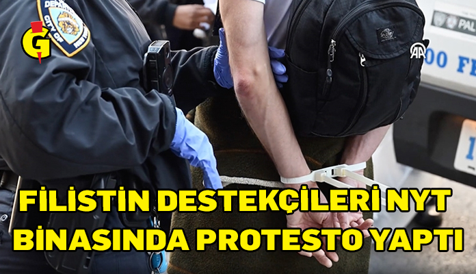ABD’nin New York kentinde New York Times (NYT) gazetesinin binasında Filistin’e destek için protesto düzenleyen göstericiler gözaltına alındı.