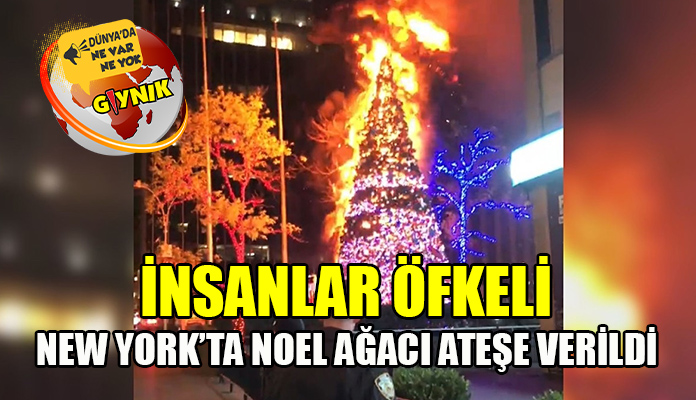 New York’ta Fox News gibi basın kuruluşlarının bulunduğu binanın önündeki Noel ağacı yakıldı.