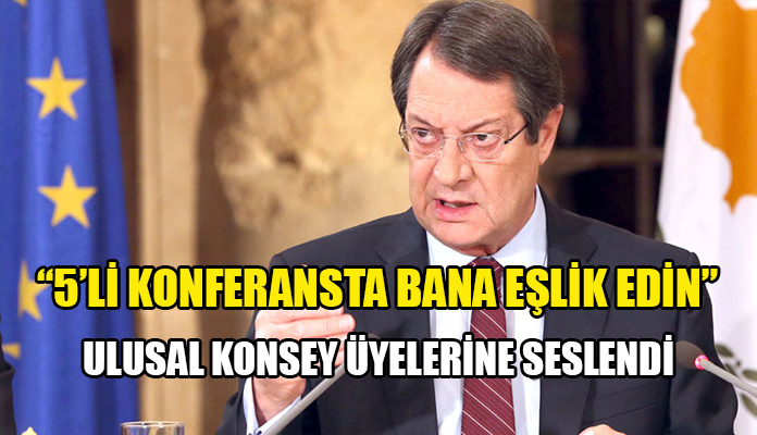 Rum lider Anastasiadis Ulusal Konsey üyelerine gayri resmi beşli konferansta kendisine eşlik etmelerini önerdi