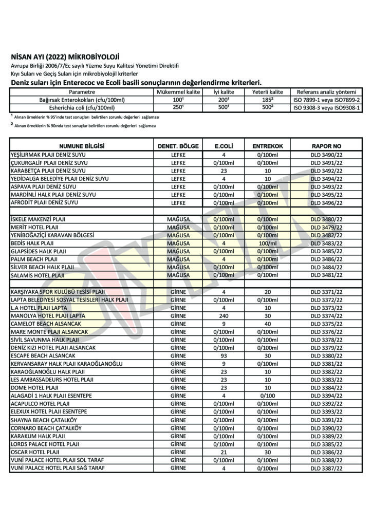 Nisan sonu yapılan deniz suyu analiz sonuçları paylaşıldı