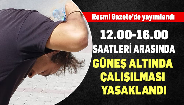 Çalışma ve Sosyal Güvenlik Bakanlığı, yarından itibaren ay sonuna kadarki süre içinde, 12.00-16.00 saatleri arasında açıkta, güneş altında çalışılmasını yasakladı.